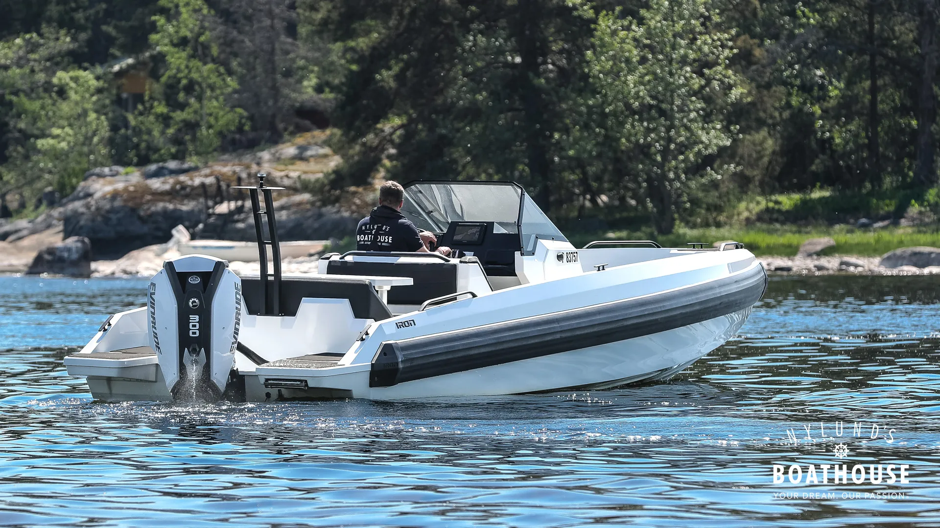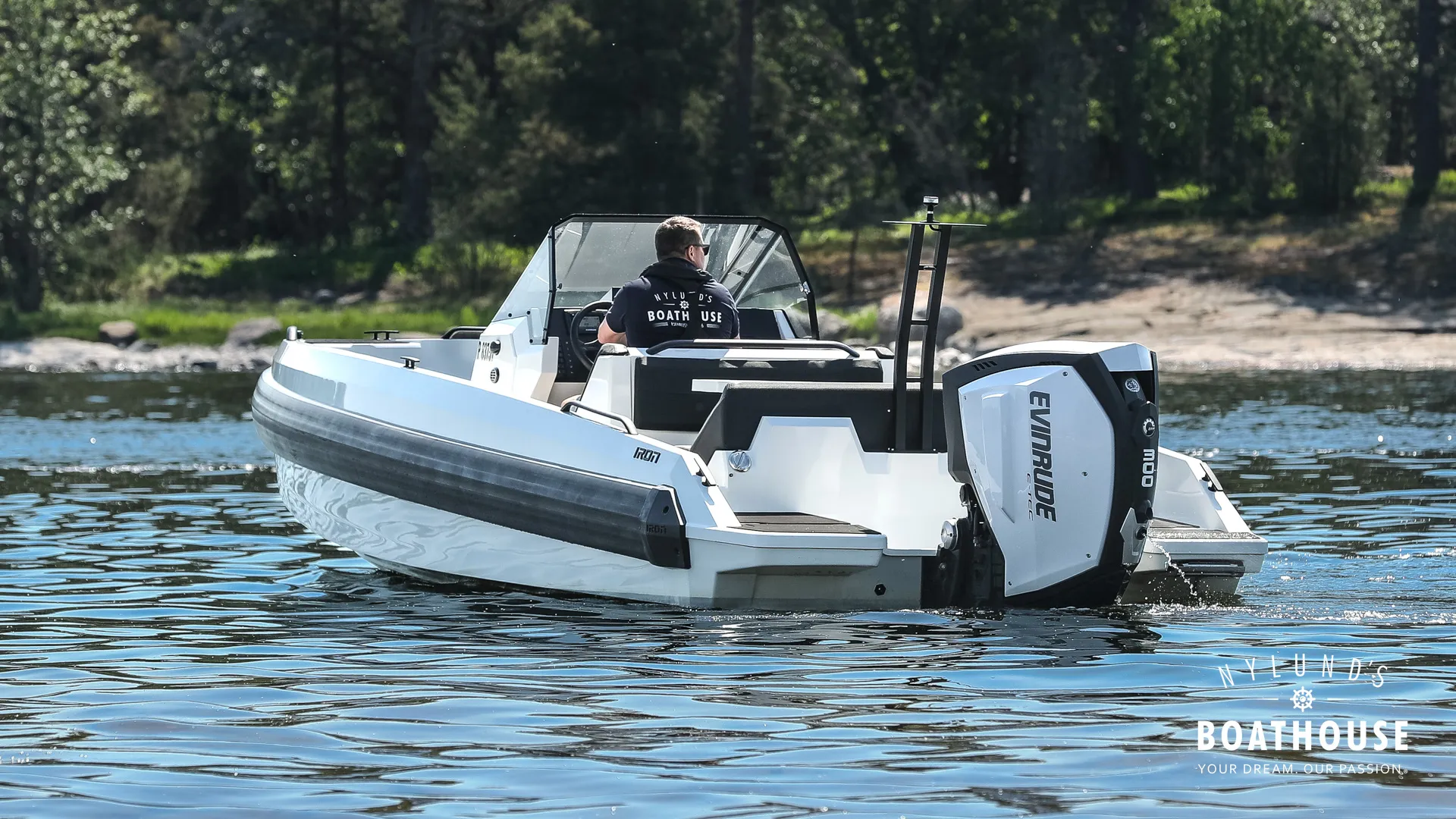 Experience the Ultimate Center-Console Boat with the Iron 767 and Evinrude 300 Engine! Are you looking for a boat that handles like a dream in all weather conditions? Look no further than Iron 767. This powerhouse is the ideal choice for those who want a motorboat that performs as impressively as it looks, with seating for 8 passengers. All Iron Boats come equipped with the Iron Fender, running along the sides like a RIB boat. This unique feature not only cushions impacts when docking but also reduces noise and vibrations, ensuring a smoother, quieter ride compared to conventional plastic and aluminum boats. The Iron 767 offers an inviting stern area with a sofa, table, and a rear-facing bench behind the driver’s seat. This setup provides comfortable seating for 4-6 people during meals and social gatherings on board.