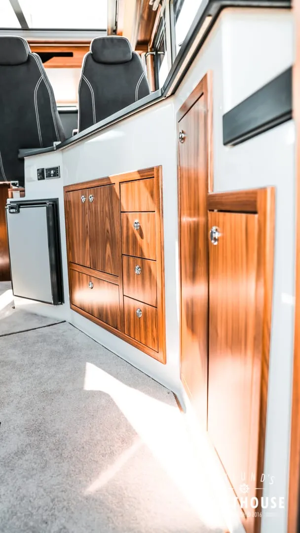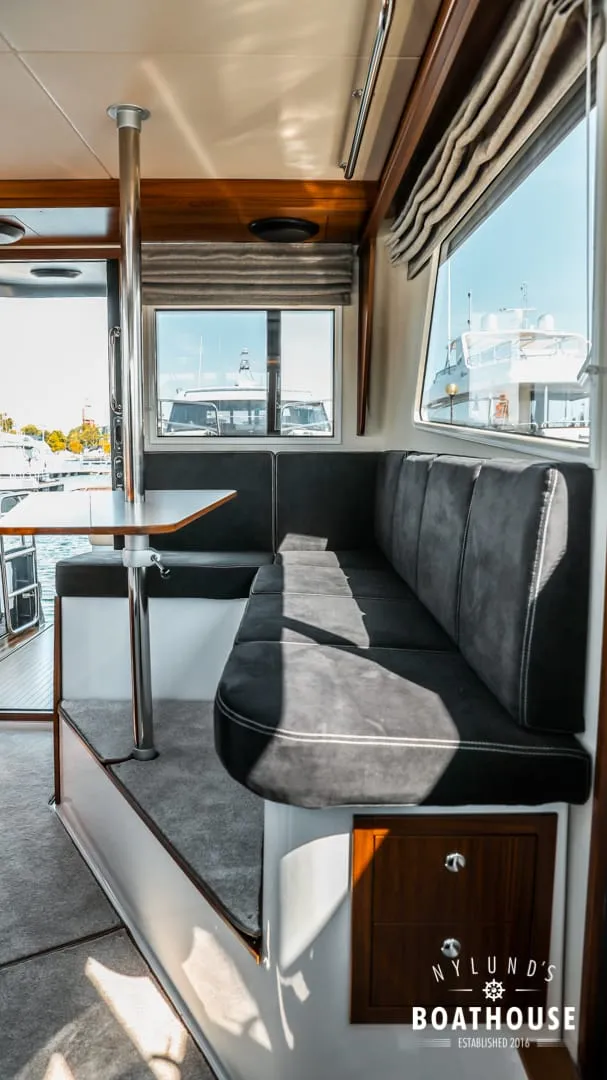 The keys to success of the all new Nord Star 31+ in its own class are spacious, well-equipped living spaces and excellent offshore properties. The walkaround deck with three doors ensures that walking on the deck is always safe and hassle-free. The cabins are designed for a mature taste: in front it has a convertible bed for two, the center cabin offers sleeping space for up to three persons. A large toilet and a luxurious salon offers extra comfort for excursions, not to mention the galley. 31+ hand-laminated, strong hull gives it even more strength and confidence to shear through breakers with confidence, making it an excellent boat for light work or excursions to archipelago.