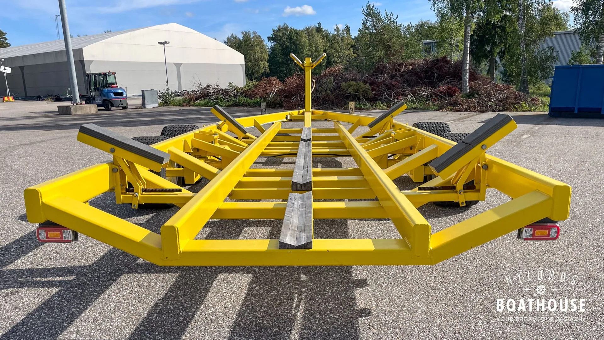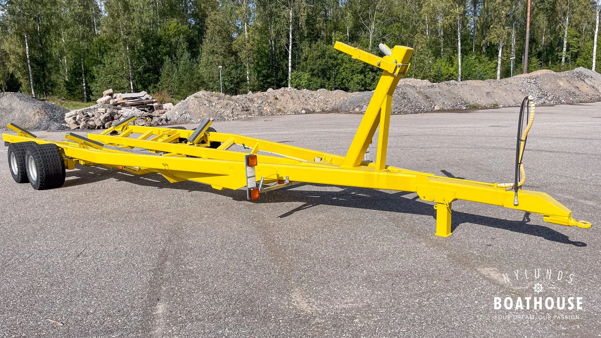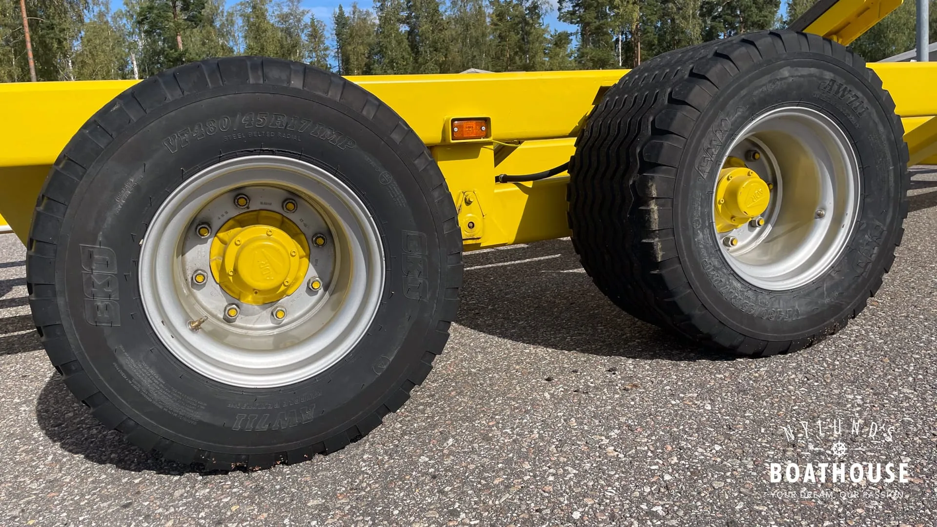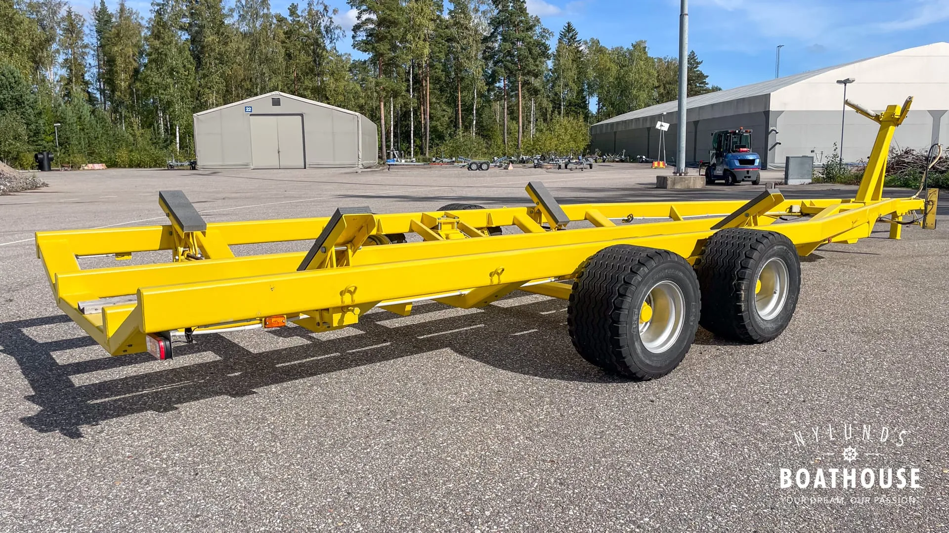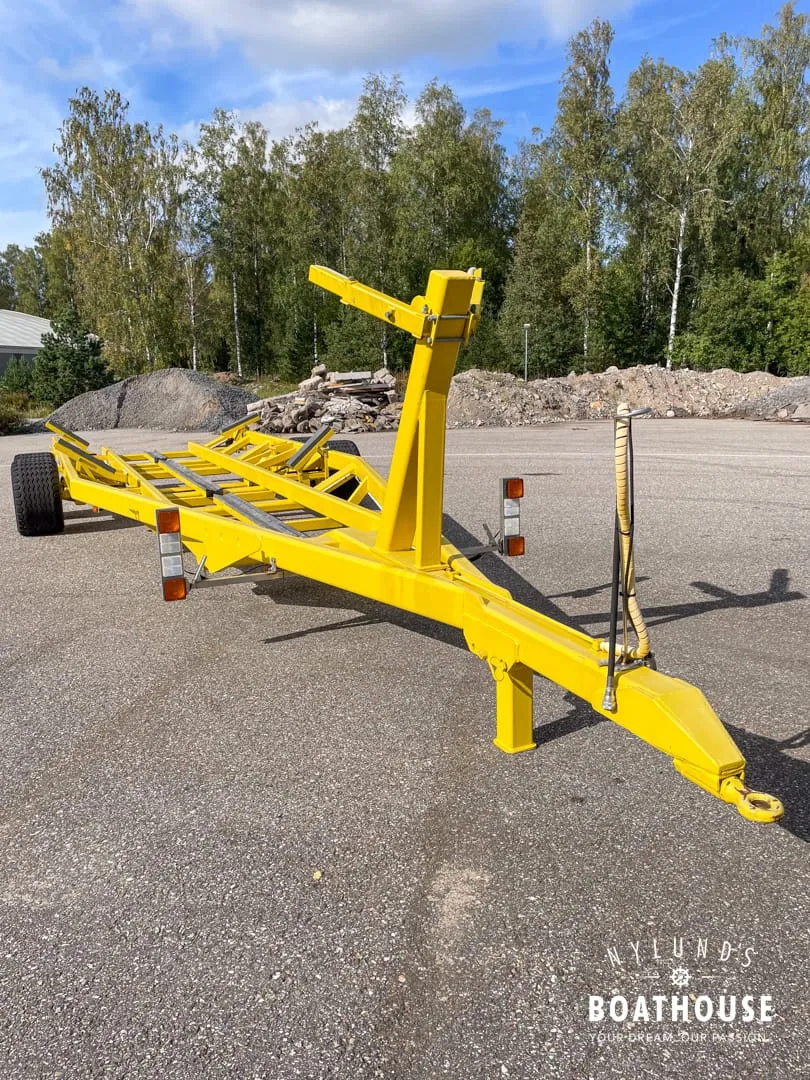 adTextFiTukeva traktorivetoinen venetraileri jarruilla, erinomaisessa kunnossa. Kantavuus n. 15t ja sopii esimerkiksi Grandezza 40:lle. Hinta uutena >40 000€. Mitat 12,80 x 4,05 m, renkaat 480/45-17.