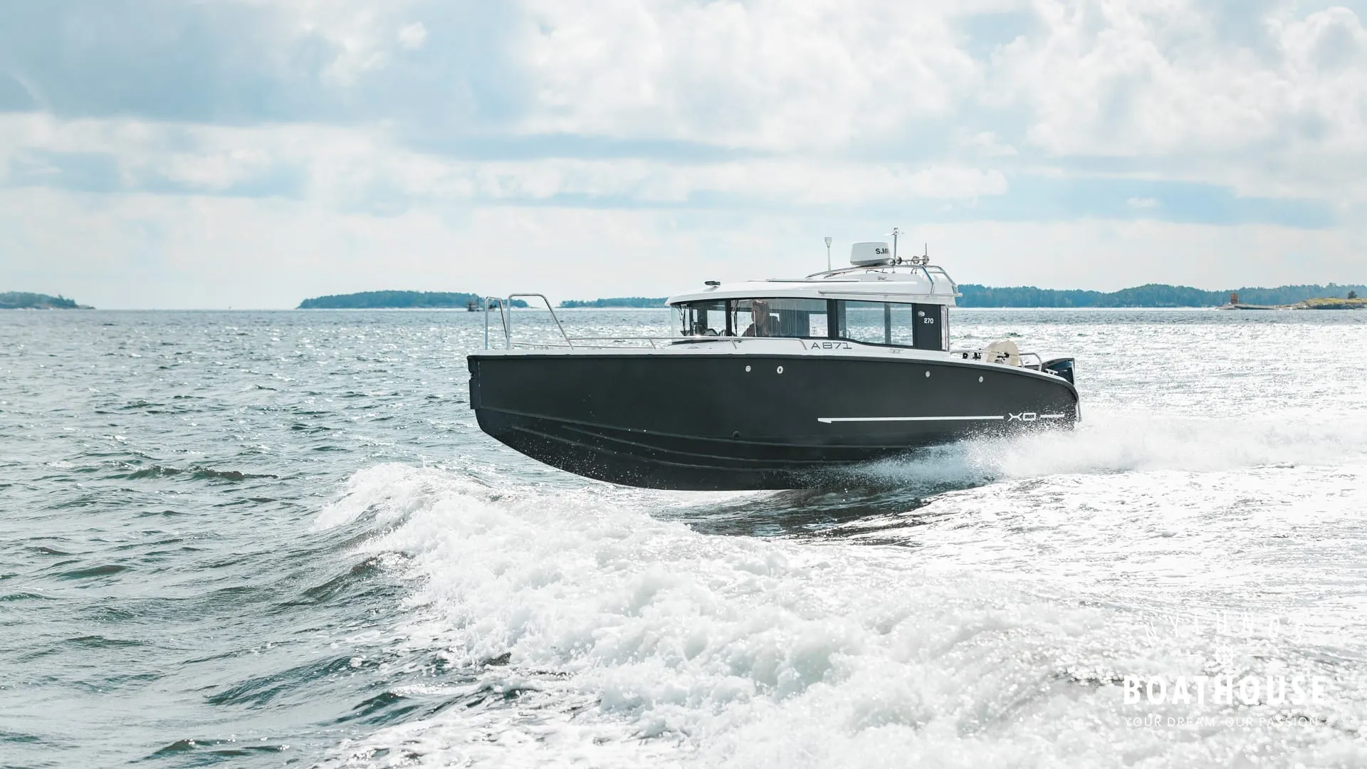 Yksinkertaisesti mikään muu vene ei ole yhtä hauska ajaa kuin tämä. Vaikka syvä-V-runko on kaikkien XO-mallien tunnusmerkki, on se poikkeuksellisen aggressiivinen XO 270 RS Cabin OB -mallissa. Vene liikkuu luonnollisesti ja vie ajonautinnon täysin uudelle tasolle.