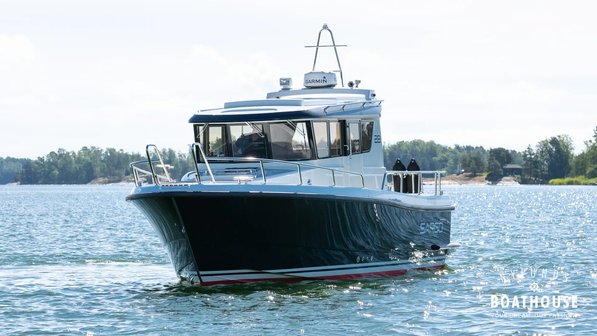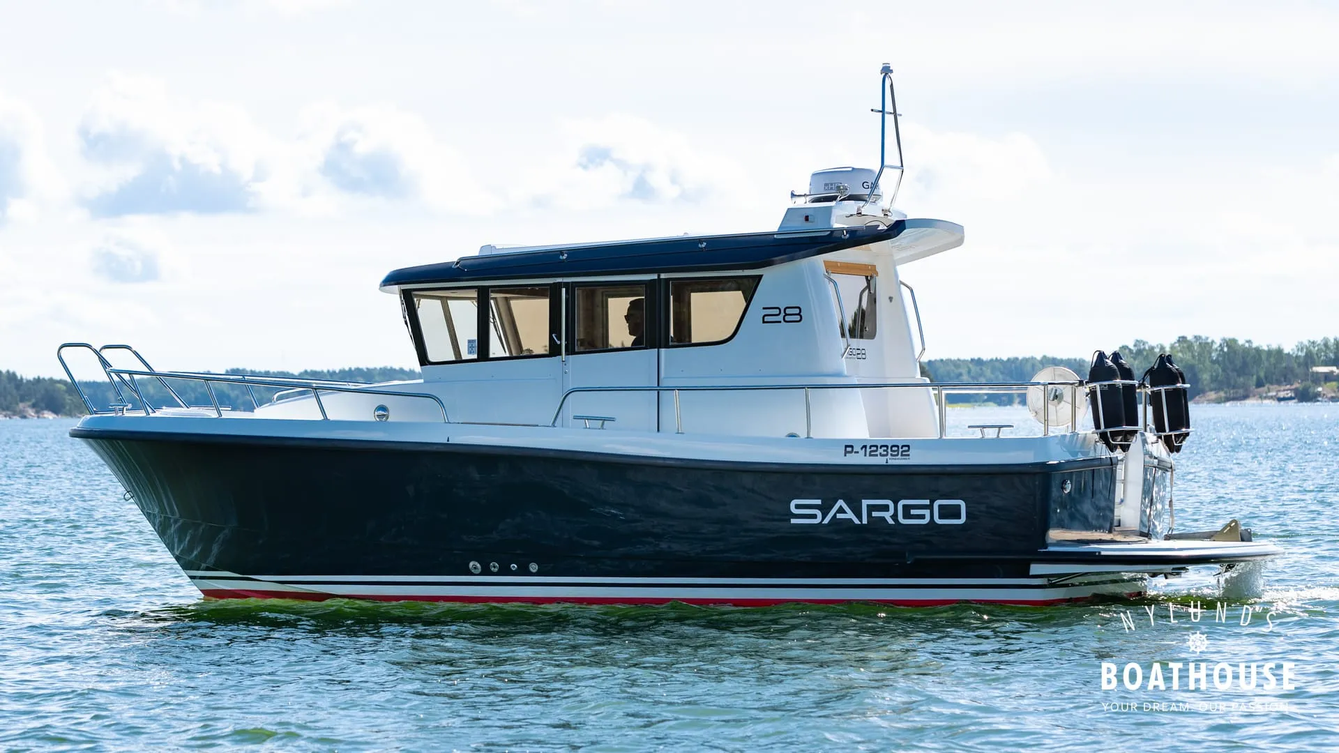 Upptäck Sargo 28, även känd som allsäsongsbåten och högkvalitativt finskt hantverk. Som för alla Sargo-båtar har 28:an en runtomgående layout och hytt med panoramautsikt. Inuti finns dubbla hytter som bekvämt rymmer fyra personer, ett pentry och en toalett. Perfekt för både transport- och semesterbåt, med gott om förvaring och en funktionell layout. Utrustning: - Garmin plotter 12" - Garmin radar - Mente marina automatiska trimplan - Bogpropeller - Elektriskt sökljus - Kompass - Taklucka - Radio - Landströmsystem - Webasto dieselvärmare - Wallas spis - Kylskåp - Färskvattensystem med varmvattenberedare - Toalett med elspolning - Däcksljus - Stege i fören - Ankare i akter med lina